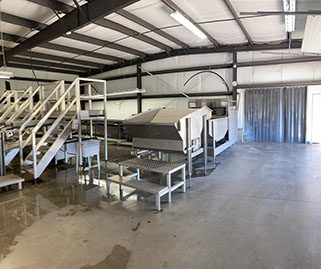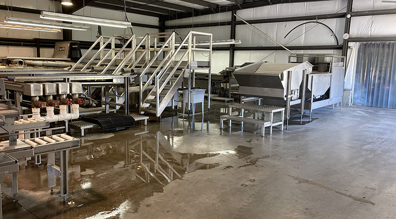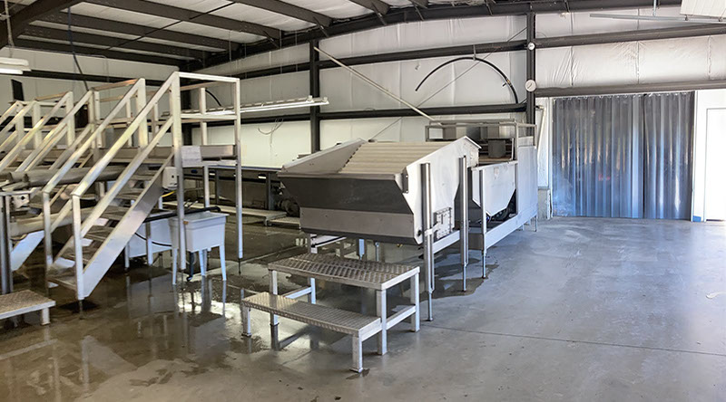 -  comes with scales and box conveyors to pack either loose fill, clam shell or 2 lb. bagged packages